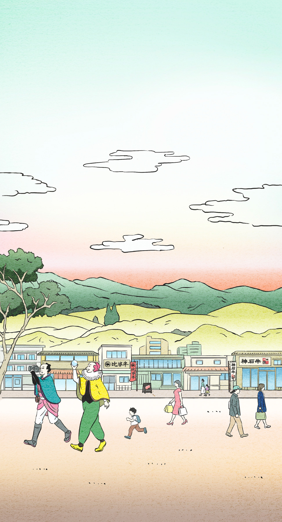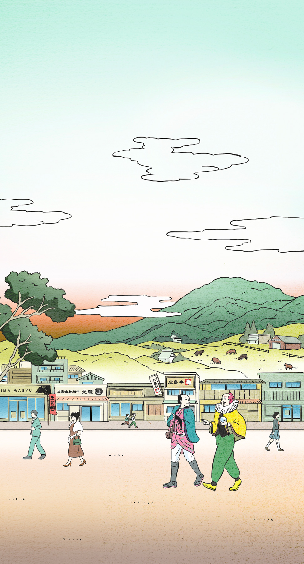 곧 두 사람은 이 시대풍?의 모습으로 몸을 감싸고, 이제 히로시마현으로! 히로시마 와규를 먹을 수 있는 가게를 찾아갑니다.